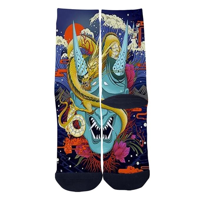 Japanese Ghost And Dragon Tattoos Socks Colorful Patterned